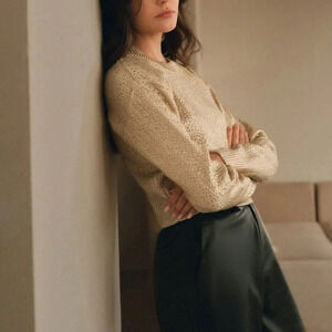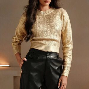 Gold Casual Women's Spray Coated Crew Neck Long Sleeve Minimalist Sweater
