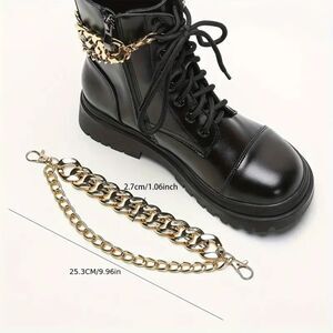 Elevate your footwear with this bold and stylish gold chain boot anklet, perfect for adding an edgy touch to your boots, heels, or sneakers. Featuring two chunky gold-tone chains, this statement accessory clips securely around your ankle, instantly upgrading your look with a touch of rockstar glam. Whether you're dressing up for a night out, concert, festival, or streetwear fashion, this boot chain is the ultimate trendy add-on!