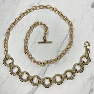 Gold Chain Link Belt Adjustable 14-44" Open Circle Hoop Statement Accessory
