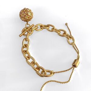 Gold tone chain link bracelet with pink CZ ball charm. Adjustable length. In EUC.