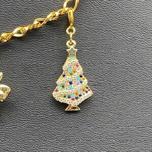 Dazzling gold charm bracelet featuring festive holiday designs. Perfect for adding a touch of sparkle and fun to your holidays.