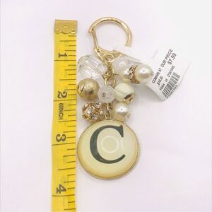 Chunky Gold colored faux white pearl rhinestone acrylic beaded bubble Initial letter C keychain key holder car accessory. Great gift for her. New with tags.