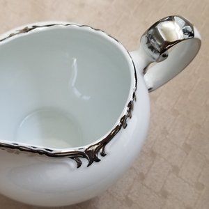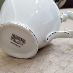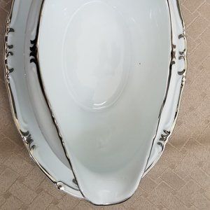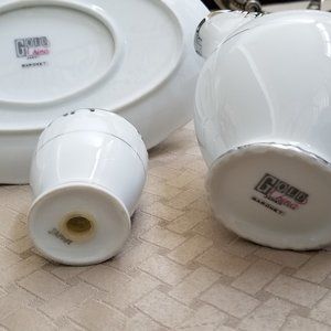 Gold China Baronet (Platinum Trim) Serveware includes Gravy Boat with attached plate, Salt Shaker & Creamer.