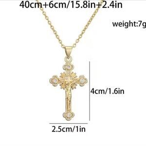 Gold Christian Cross Necklace Crucifix Jesus & Lab Made CZ Diamonds With Complementary Drawstring Gift Bag.