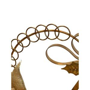 Gold Christmas Heart Shaped Centerpiece Card Holder With Bird Vintage
