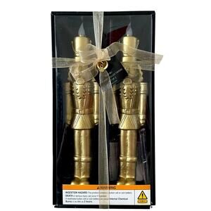 Gold Christmas Nutcracker Flameless LED Taper Candles 11in Set of 2 Holiday NEW