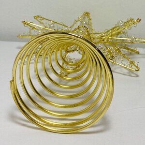 Gold Christmas Tree Topper 7.5" Wire w/Iridescent Beads Prism Star Design EUC