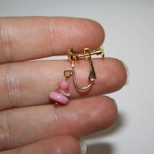 These charming clip-on earrings feature delicate pink drop beads set in gold-tone metal—bringing a touch of vintage romance to any look. Lightweight and perfect for non-pierced ears.