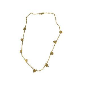 Embrace the delicate artistry of this gold clover leaf chain necklace that elegantly adorns the neckline. The subtle floral charms add a touch of nature-inspired sophistication, gracefully enhancing its allure. With a length of 18 inches, it comfortably drapes around the neck, making it an exquisite addition to any ensemble.