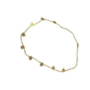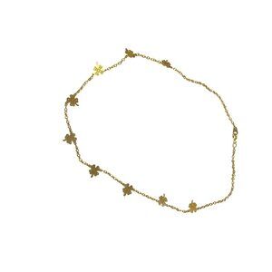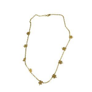 Gold Clover Leaf Chain Necklace With Delicate Floral Charms 18" Length For Women
