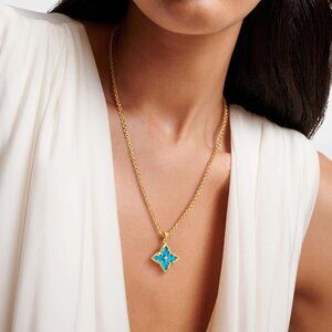 Material: 14K gold plated over brass, Nickle-free, leads-free and designed with low allergenicity, hypoallergenic necklace jewelry. Delicated daitny clover pendant is made from turquoise. Each charm is carefully handpicked for its exceptional quality. Due to the unique texture of the irregular patterns, the surface may not be perfectly same patterns