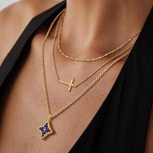 Gold Clover Necklace Women Dainty 14K Gold Dark Blue Pendant Adjustable Chain