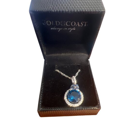 Gold Coast Necklace Silver Tone Blue Crystal Rhinestone Pendant Adj 18" + 3" NEW