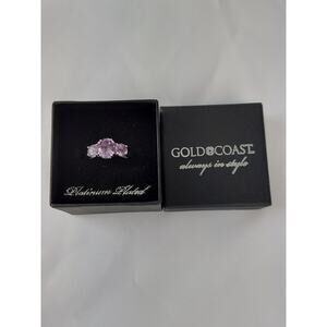 Gold Coast Platinum Plated 3 Stone Amethyst Ring Size 10