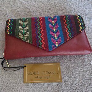 Gold Coast Southwest Aztec Design Red Clutch Wallet - NWT