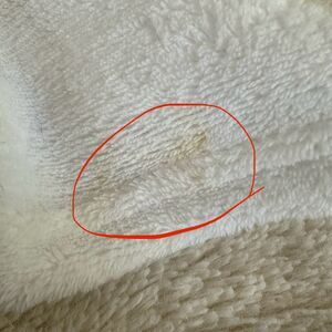 Item is in good pre-owned condition. Has no holes but does have a small stain on the front which is slightly more noticeable in person than it is in pictures. Should come out okay in a wash with a little pre-treatment