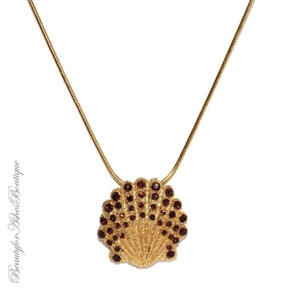 Gold Coffee Ocean Scallop Sea Shell Beach Cuff Crystal Resort Wear Necklace