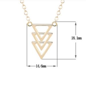 Gold colored triangle/arrow necklace! Super trendy right now. Great detail! Hangs about 10". Total chain length from hook to clasp is about 20".