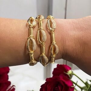 This stunning gold bracelet adds a touch of elegance to any outfit. Perfect for any occasion. Handmade, all brass bangle for sustainability and long lasting wear. Larger sizes are available upon request. Sold Separately.