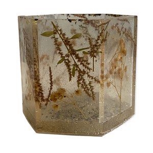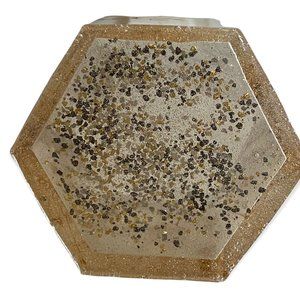 Description: Gold, Cream & Black Resin Handmade Planter, Desktop Pen Holder, Trinket Holder. Gold glitter accents. No drainage holes-- use as a cachepot.