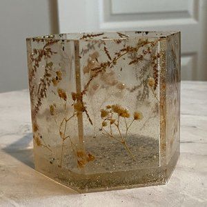 Gold, Cream & Black Resin Handmade Planter, Desktop Pen Holder, Trinket Holder