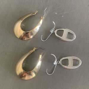 Gold Crescent hoops and Silver Tab Earrings - 2 PAIRS, Unmarked