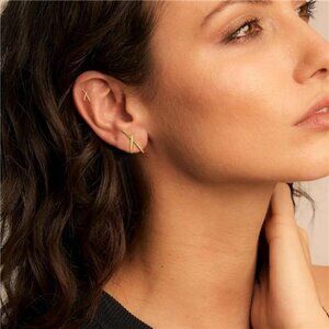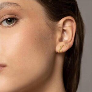 Add a touch of elegance and versatility to your look with this Gold Earring Set, featuring a unique crisscross design that instantly elevates any outfit. This set includes two pairs of earrings — a larger statement pair for the earlobe and a smaller dainty pair perfect for second piercings or cartilage. Mix, match, or layer them for a chic, personalized style.