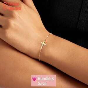 Gold Cross Bracelet with Bible Verse Engraving, Adjustable 7" Chain