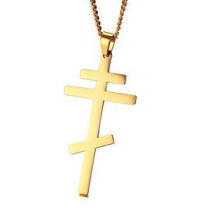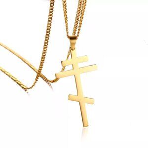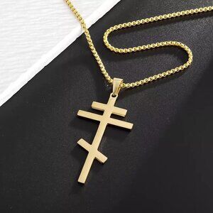Gold Cross Necklace Eastern Orthodox Stainless Steel Pendant Men Russian Greek