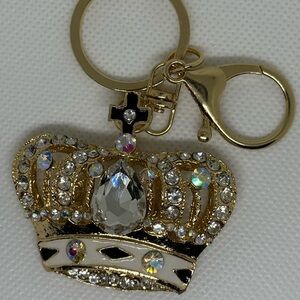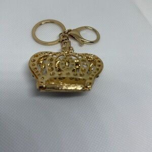 Elegant gold crown keychain adorned with sparkling rhinestones. Perfect for adding a touch of royalty to your accessories.