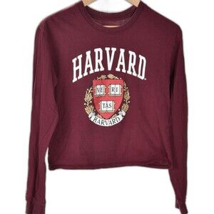 Gold Crush Harvard University Long-Sleeve Cropped Knit T-Shirt Size M