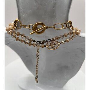 Gold & Crystal Beaded Multi-Layer Necklace With Large Hammered Rings M07