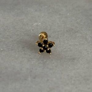 Gold Crystal Black Flower Cartilage Earring Brand New