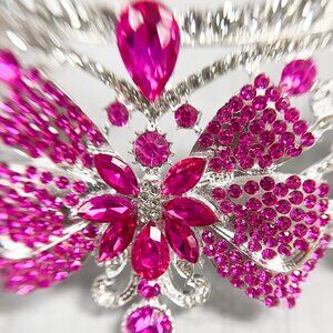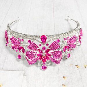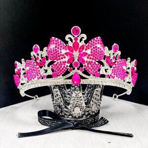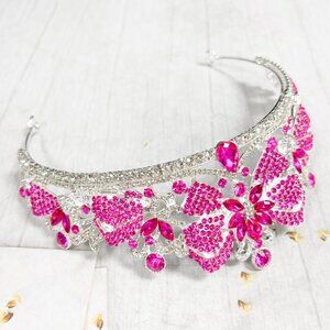 Gold Crystal Crown, Princess Tiara, Hot Pink Gemstone Crown, Quinceanera Crown