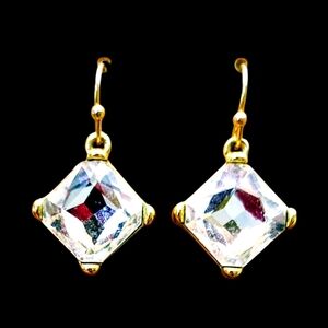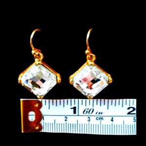 Gold & crystal earrings measuring 1-1/4" long x 1/2" wide. Classic, simple design; they go with everything! Pre-loved, excellent condition.