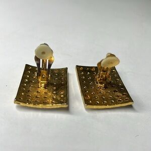 Gold Crystal Encrusted 1.25” x 1” Clip Earrings