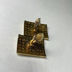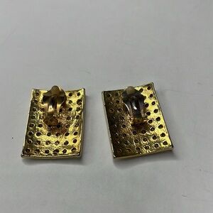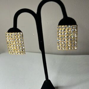 This is a beautiful pair of Gold Crystal Encrusted 1.25” x 1” Clip Earrings.