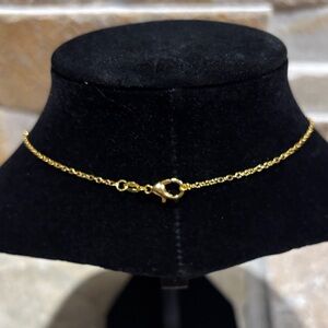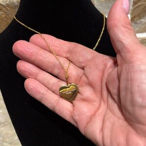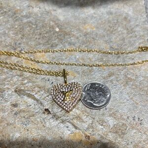 Upcycled and stamped Louis Vuitton crystal and gold heart on an unbranded 18” gold plated chain.