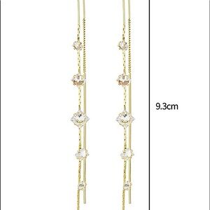 GOLD CRYSTAL RHINESTONE THREADER EARRINGS. GOLD PLATED
