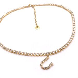 Women’s female Gold tone sparkling Cubic Zirconia personalized monogram Initial U Choker Necklace With a lobster claw clasp. Approximately 12” in length with a 2” extension New with tags