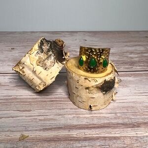 Gold Cuff Ring with Green Teardrops
