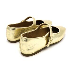 Gold Cushioned Insole Classic Mary Jane Ballet Flat Adjustable Ankle Strap