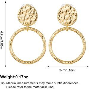 Color: These clip-on earrings designed with a shiny hammering finish match any look in your wardrobe. These clip-on drop earrings are a mix of contemporary and classic designs great for everyday wear, or elegant occasion.