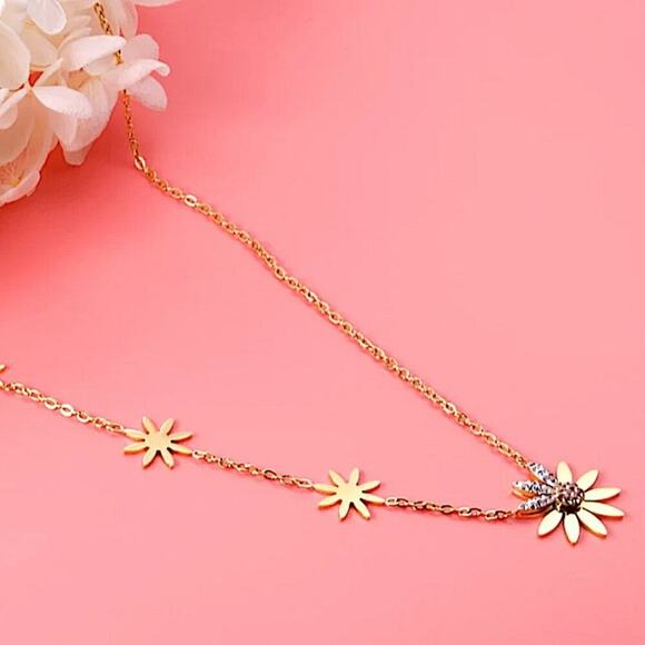 Gold Daisy Crystal Necklace, Sunflower, Stainless Steel, Flower Minimalist