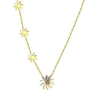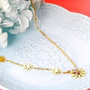 Gold plated Daisy flower crystal necklace. Also available in silver in different listing. JEWELRY IS HYPOALLERGENIC AND TARNISH FREE. STAINLESS STEEL WITH 4 MICRONS OF 18K GOLD PLATING.