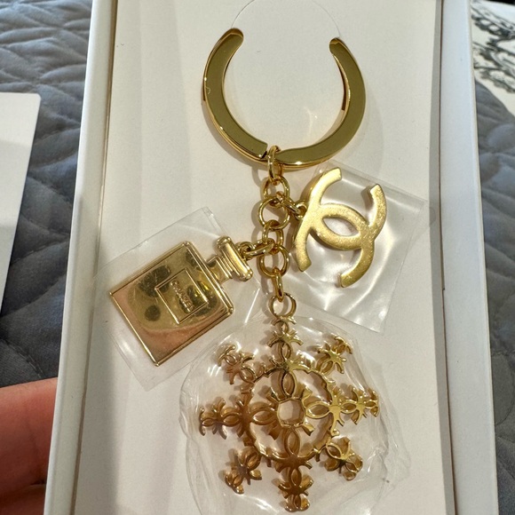 Elegant gold keychain accessory featuring a designer emblem. Perfect for adding a touch of luxury to your everyday essentials.