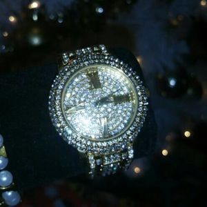 This whole bracelet is covered in simulated diamonds. Very beautiful and flashy. Statement piece!