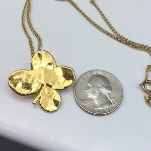Gold Dipped Vermeil Four Leaf Clover Pendant Brooch On 20" Chain Necklace