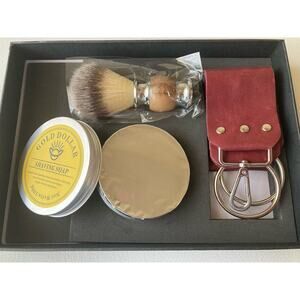 The Gold Dollar Straight Razor Kit is a premium shaving. The razor is missing but the contents appear to be new.