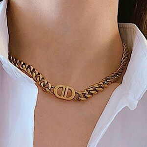 Gold Double D Stainless Steel Gold Plated Cuban Chain Link Necklace